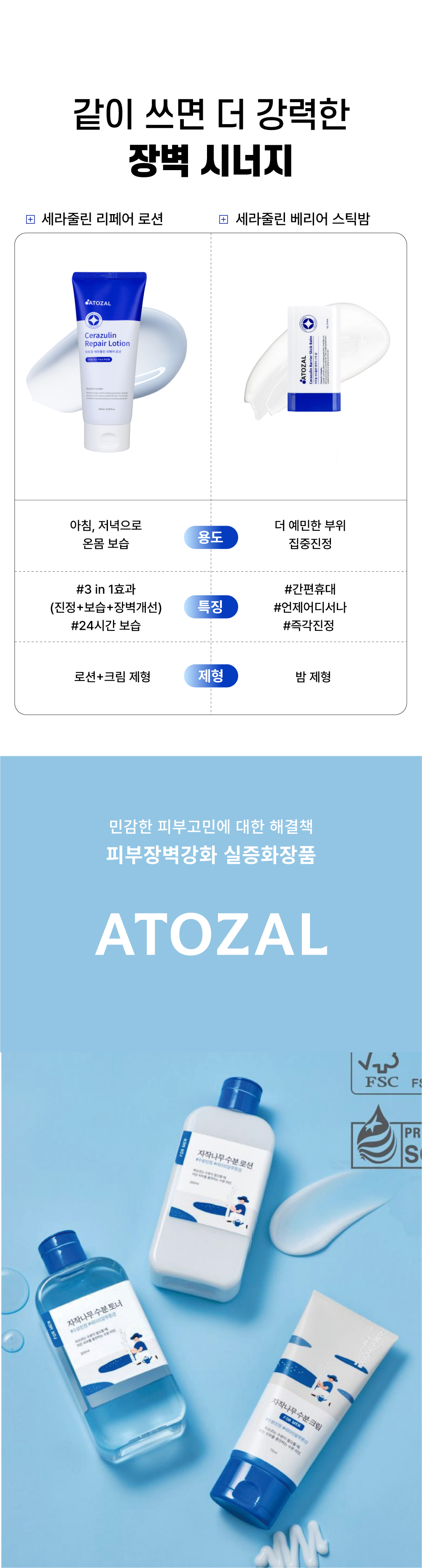 · 세라마이드,아미노산,구아이아줄렌으로 구성된 아토잘만의 독점 특허 출원 성분 세라줄린 함유 피부장벽 강화 고보습 로션